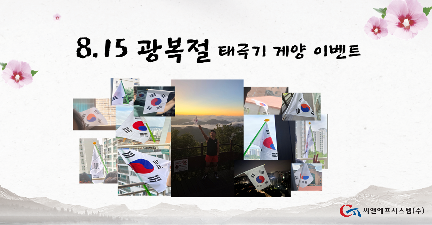 씨앤에프시스템은 지난 8월 15일, 광복 80주년을 기념하여 임직원들과 함께 태극기 게양 인증 이벤트를 진행했다. 임직원들이 직접 태극기를 게양한 뒤 태극기와 함께한 사진을 회사 공식 채널에 공유하며 광복절의 의미를 되새겼다.