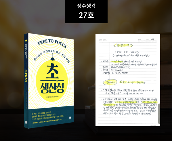 | 사람은 누구나 원하는 인생을 살고 싶어한다. 그러나 말은 쉽지만 인생이 뜻대로 잘 안된다는 것은 누구보다 잘 알고 있을 것이다. 인생이 교과서나 책에 있는 것처럼 술술 풀리면 새로운 교과서와 책은 더 이상 필요없을 것이다. 그러나 책은 쉼업이 새로 나오고 있다. 뻔하다고 생각하겠지만, 개인의 생산성을 극대화하여 원하는 인생을 살수 있게 도와준다고 하는 <<초생산성>>을 소개한다. 생산성을 높일려면 첫째, 멈춰라. 둘째, 잘라내라. 셋쩨, 행동하라.를 실천해야 한다고 한다. 어떤 비법인지 같이 찾아보시죠!? -<정수생각>- 상세보기→ |