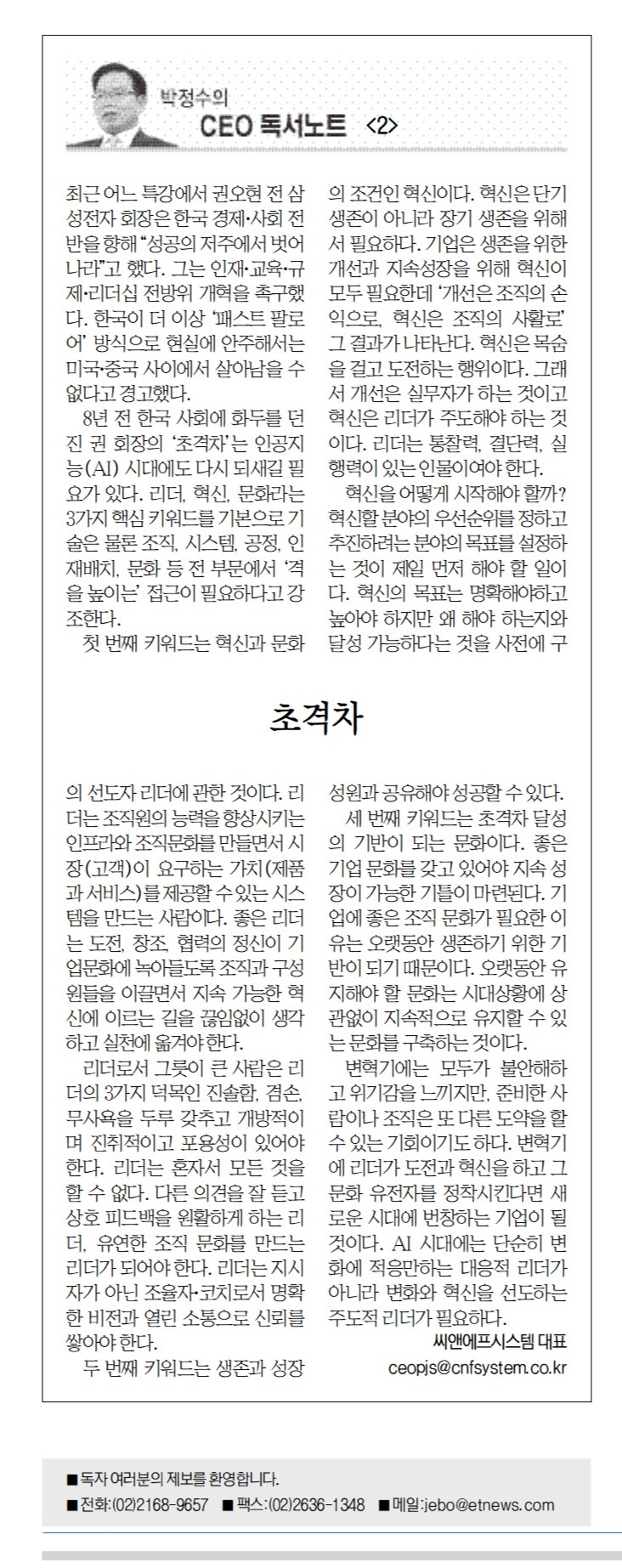 [전자신문] 박정수의 CEO 독서노트 〈2〉 초격차 - 2026년 2월 12일